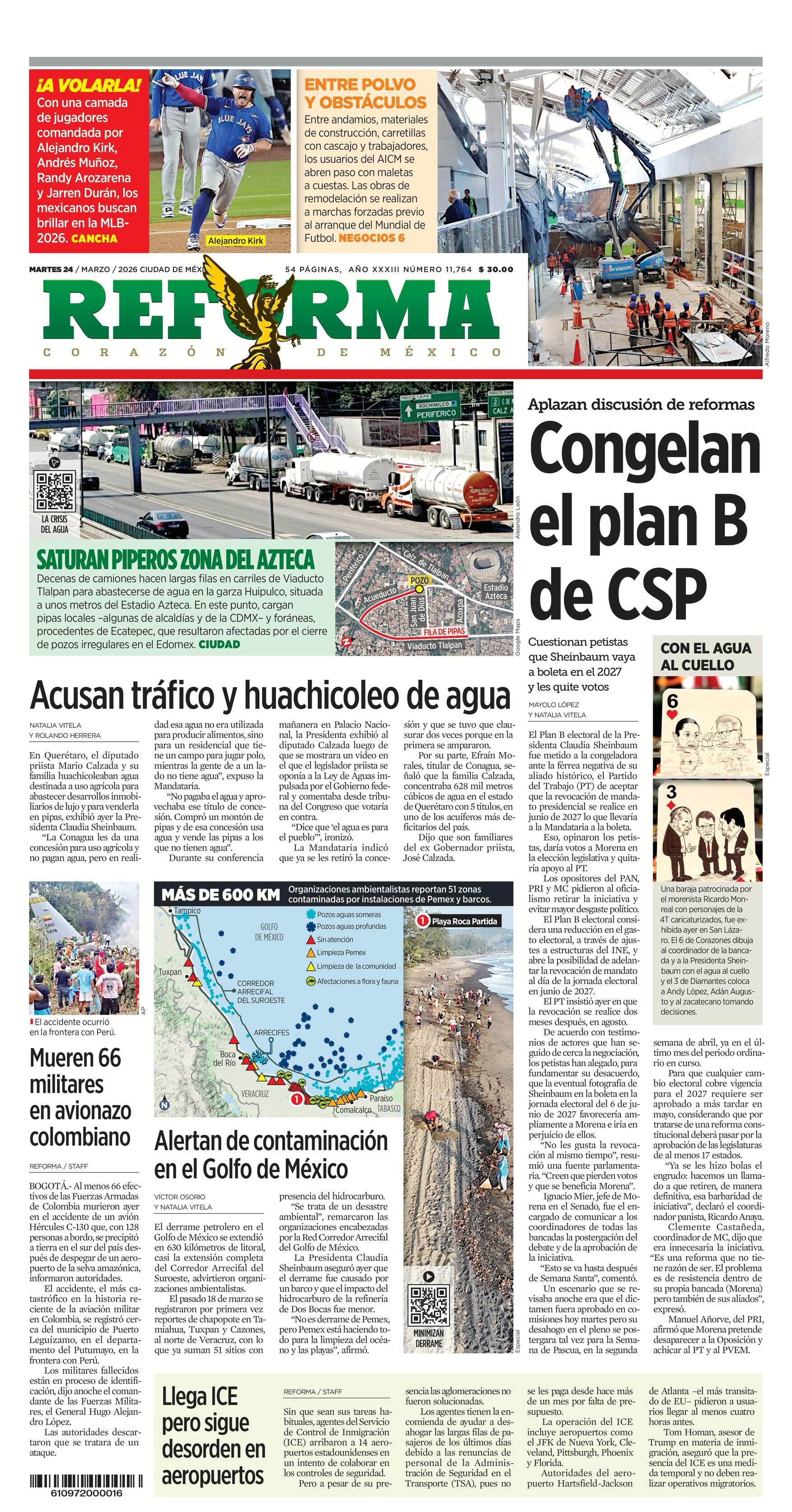La nueva Ley Nacional de Aguas ha permitido detectar presuntos adeudos por casi 12 mil millones de pesos de empresas en el uso de ese recurso. “De no regularizarse, van a tener sanciones correspondientes e incluso la cancelación de sus títulos” para el manejo y explotación. Así se dio a conocer ayer en la conferencia matutina de la presidenta Claudia Sheinbaum Pardo, a propósito del Día Mundial del Agua, que se conmemoró el pasado domingo. En ese marco, el titular de la Comisión Nacional del Agua (Conagua), Efraín Morales López, presentó casos en los que particulares que tenían concesiones de agua para uso agrícola -que el Estado entrega de manera gratuita- lucraban con el recurso al transferirlo a otros actores mediante pagos millonarios para distintos usos.