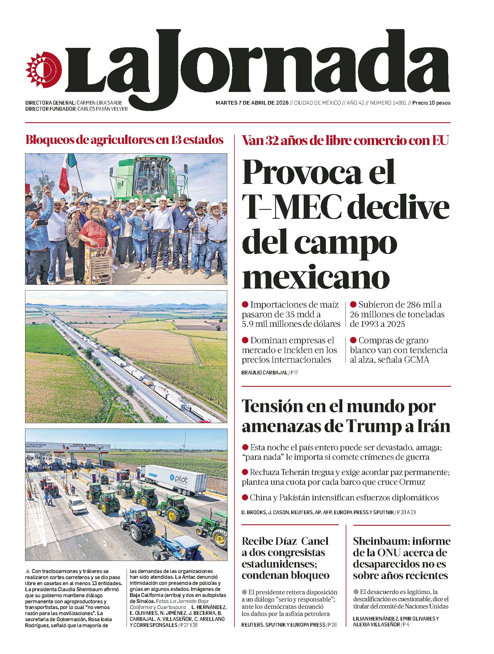 Como dice el refrán: “No hay plazo que no se cumpla ni fecha que no se llegue”. Sin la misma amplitud que sus protestas de noviembre del año pasado, pero con indudable contundencia, este lunes 6 de abril, el Frente Nacional para el Rescate del Campo Mexicano (Fnrcm) y la Asociación Nacional Transportista (Antac) bloquearon carreteras y tomaron casetas de peajes. El esquema de pignoración que a finales del año pasado se negoció entre el Fnrcm y el gobierno federal fracasó. El gobierno quiso que los productores absorbieran los costos del almacenamiento y del crédito, lo que para los agricultores era el camino a la quiebra. Apenas el pasado 25 de febrero, mandaron una carta advirtiendo que la celebración de la Copa Mundial 2026 en México se topará con protestas de productores agropecuarios, transportistas y ciudadanos por la falta de mercado y precios para sus cosechas y la inseguridad en carreteras.